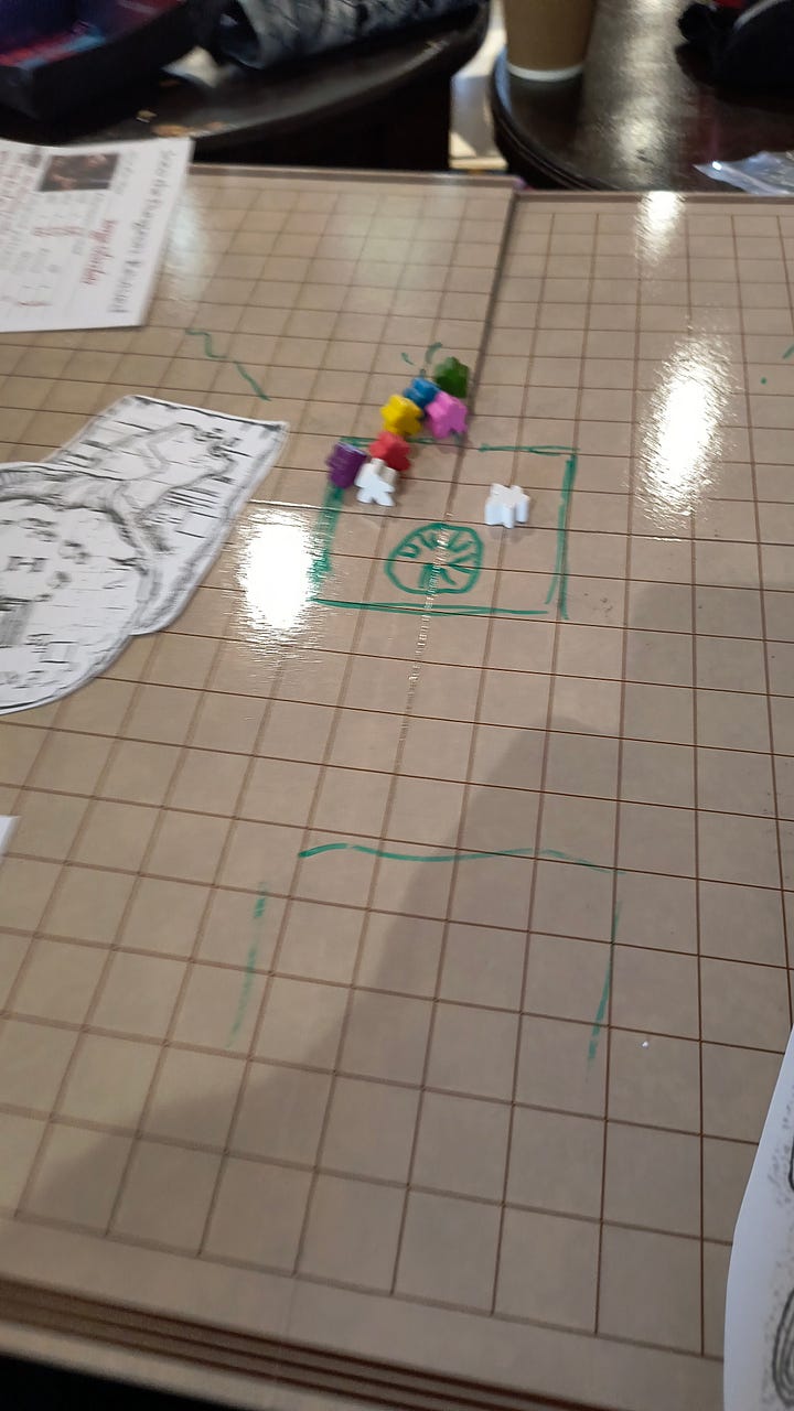 Then it was my turn to run a game - I’d wanted to give Into the Dungeon: Revived, a dungeon crawler system based on Into the Odd a go. I’m quite fond of these systems which are very light and offer fast combat with no dice rolls to hit. The author had posted conversions of a few adventures on their blog including The Old God’s Return, a DCC adventure. This looked like a decent adventure for a one shot, and with the conversion notes to help it was picked as my game to run. I enjoyed running the adventure very much, it was fast moving with a number of combat and adventure heavy encounters. The session was a lot of fun and over all too soon, and because I was into it I forgot to take photos.
